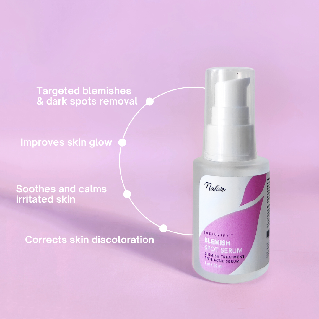 Introducing our Blemish Spot Serum, meticulously formulated to target and reduce the appearance of post-acne spots, dark spots, dark circles, pigmentation, and uneven skin tone. Enriched with Niacinamide, Zinc, and Vitamin B5, this powerful serum works synergistically to correct skin discoloration, treat stubborn brown patches, and improve overall skin brightness. Suitable for all skin types, this serum offers a comprehensive solution to achieve a clearer, more radiant complexion.